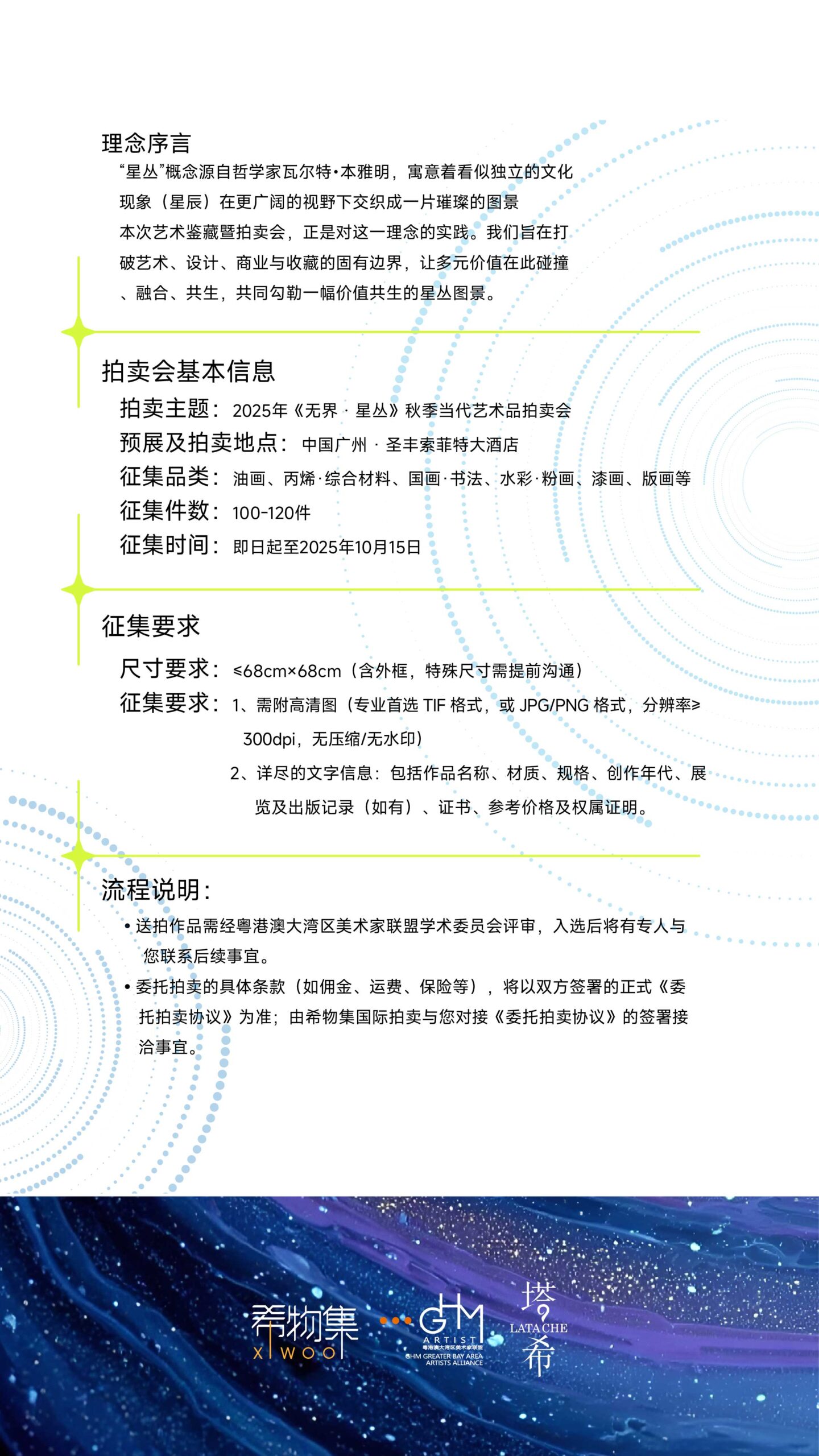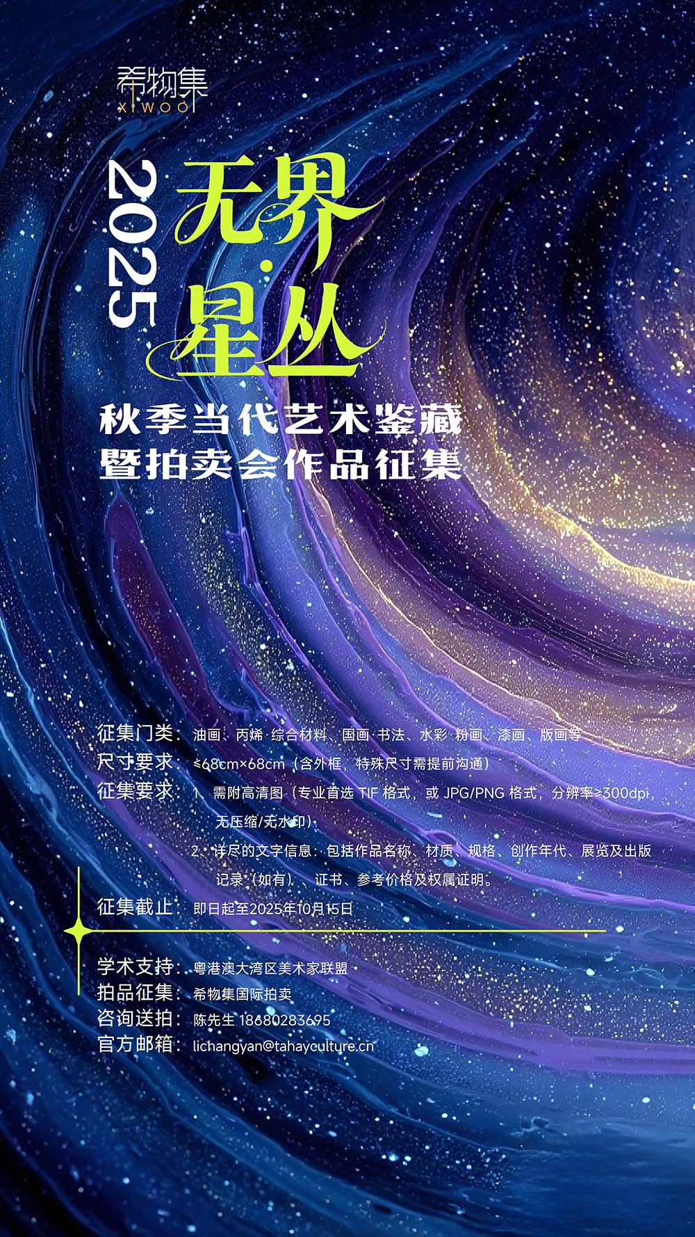《无界・星丛》秋季当代艺术拍卖征集活动,与塔希文化公众号信息实时同步。搜索公众号【希物志】,即可获取送拍咨询对接及活动动态更新~